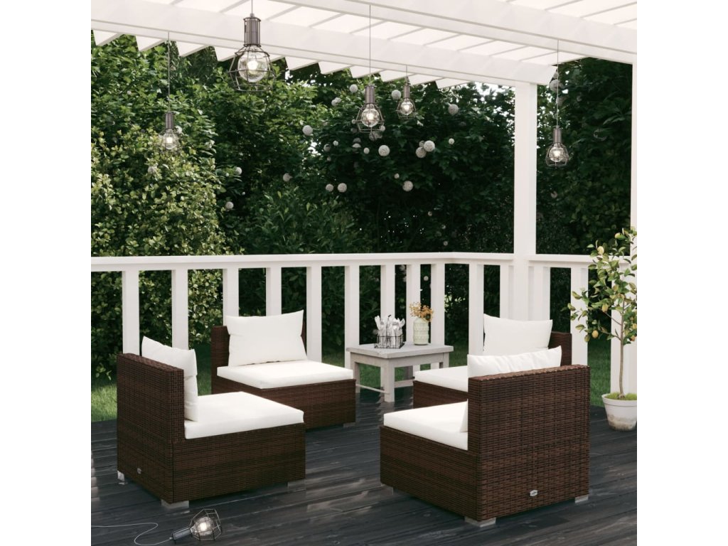 vidaXL 4-dielna záhradná sedacia súprava s vankúšmi hnedá polyratanová