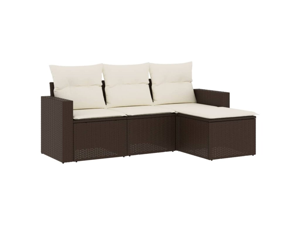 vidaXL 4-dielna záhradná sedacia súprava s vankúšmi hnedá polyratanová