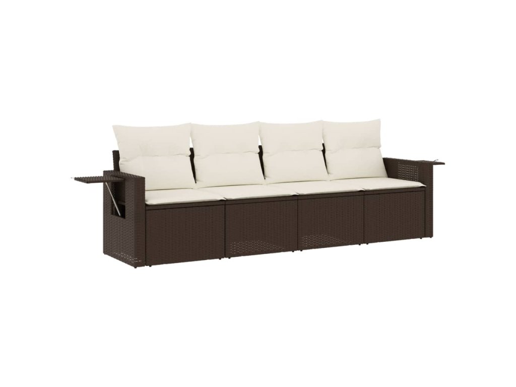 vidaXL 4-dielna záhradná sedacia súprava s vankúšmi hnedá polyratanová