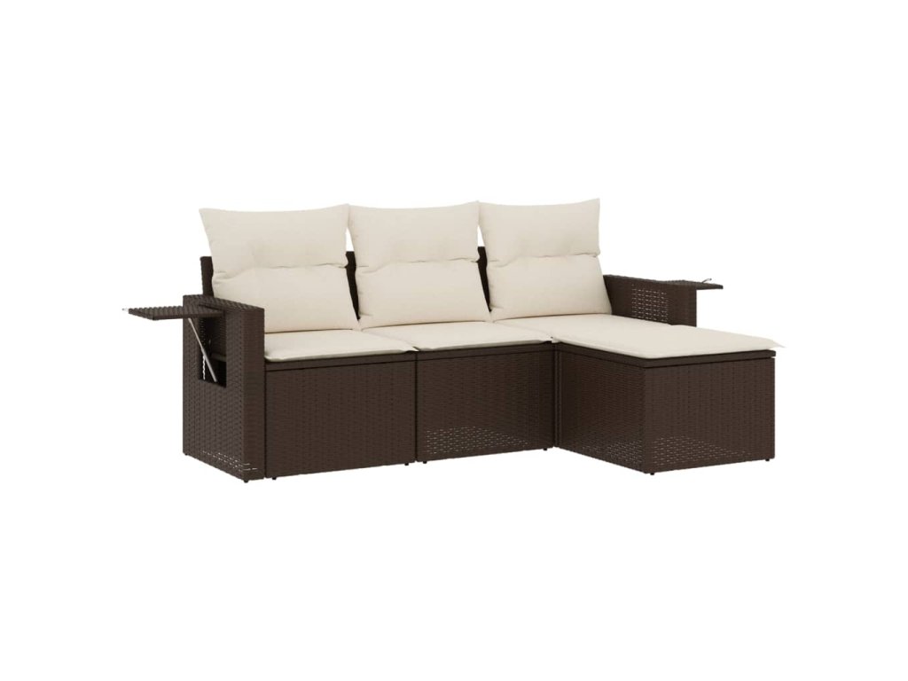 vidaXL 4-dielna záhradná sedacia súprava s vankúšmi hnedá polyratanová