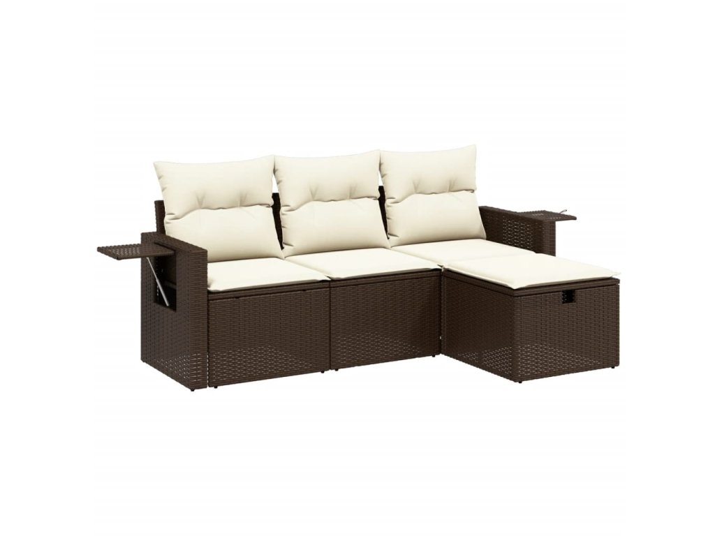 vidaXL 4-dielna záhradná sedacia súprava s vankúšmi hnedá polyratanová