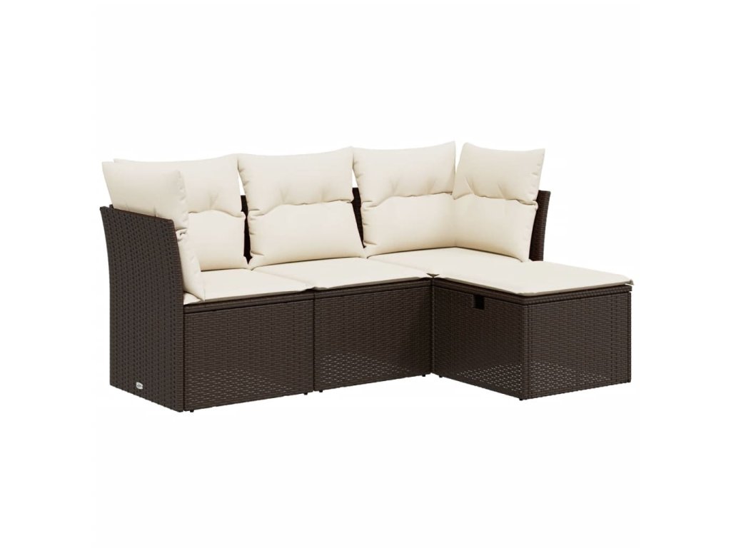 vidaXL 4-dielna záhradná sedacia súprava s vankúšmi hnedá polyratanová