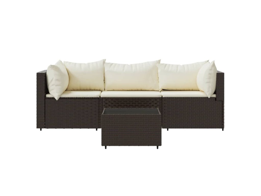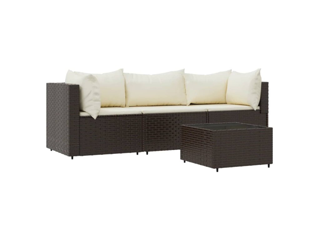 vidaXL 4-dielna záhradná sedacia súprava s vankúšmi hnedá polyratanová