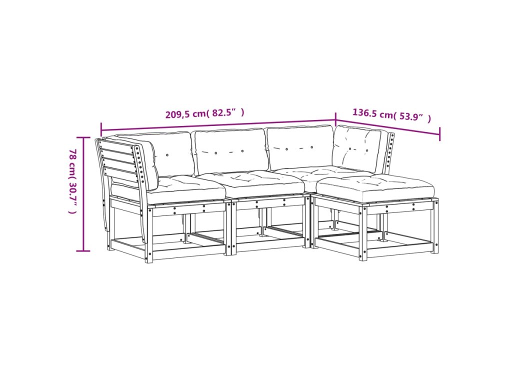 vidaXL 4-dielna záhradná sedacia súprava s vankúšmi masív douglas