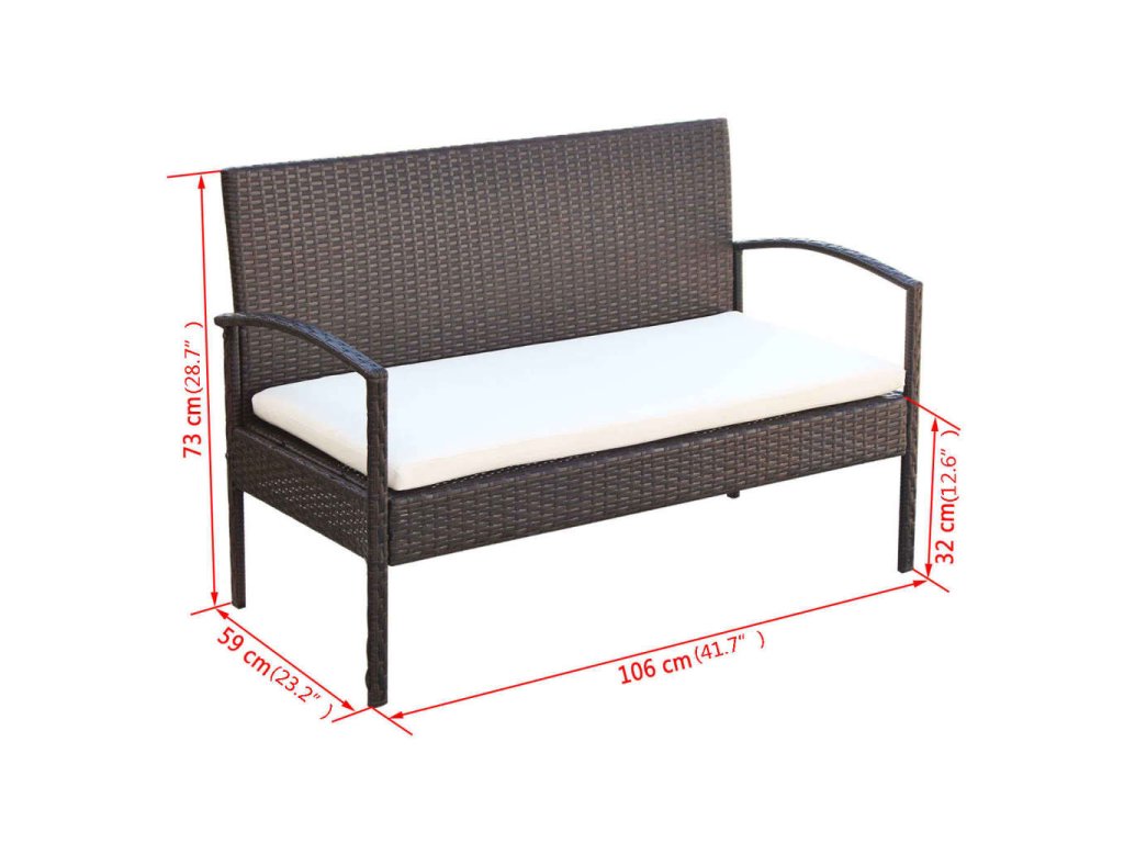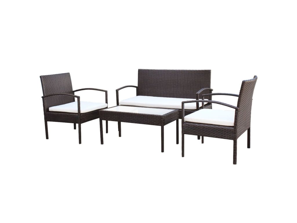 Súprava je vyrobená z PE ratanu, ktorý je vodeodolný, odolný voči poveternostným vplyvom, dá sa ľahko vyčistiť, je trvácny a vhodný na každodenné používanie v exteriéri. Rám z ocele s práškovou povrchovou úpravou zaručuje dobrú stabilitu a dlhú životnosť. Keďže má ľahkú konštrukciu, môžete ju bez problémov kamkoľvek presunúť.