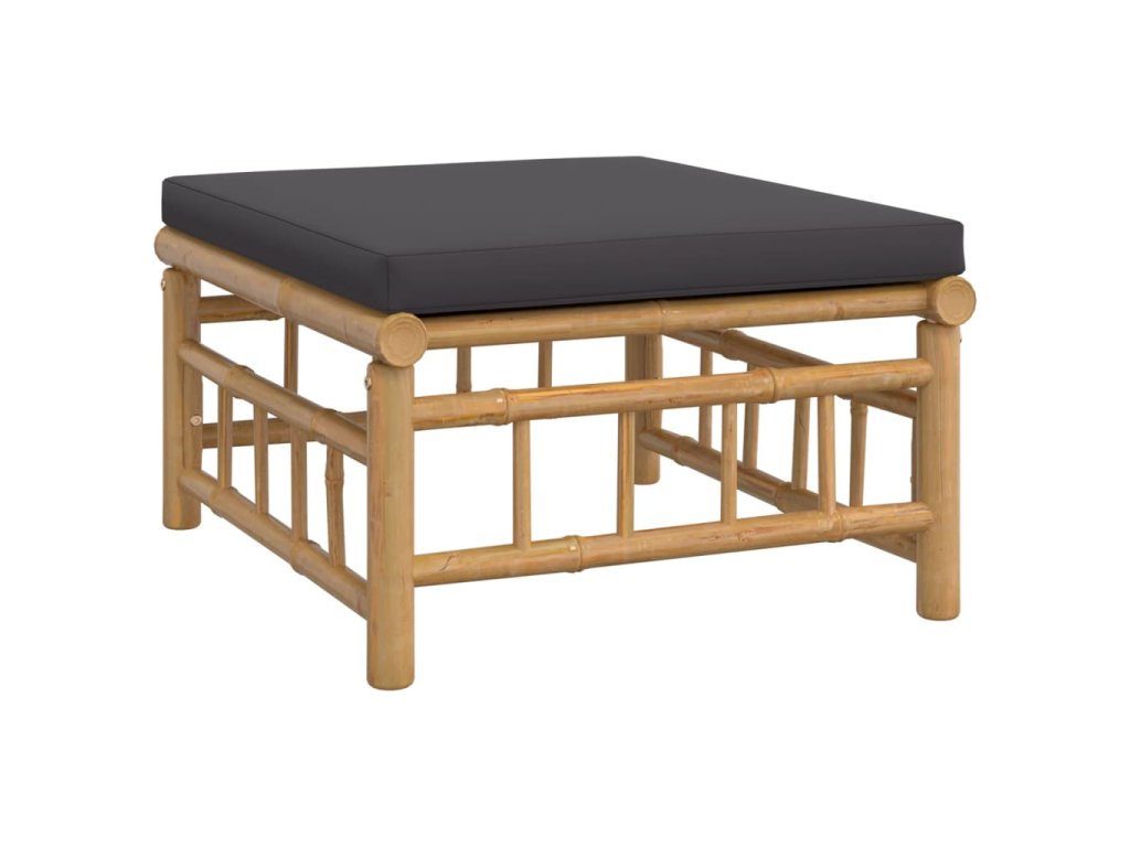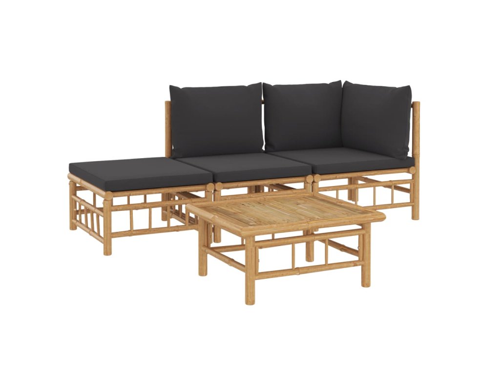 vidaXL 4-dielna záhradná sedacia súprava tmavosivé vankúše bambus