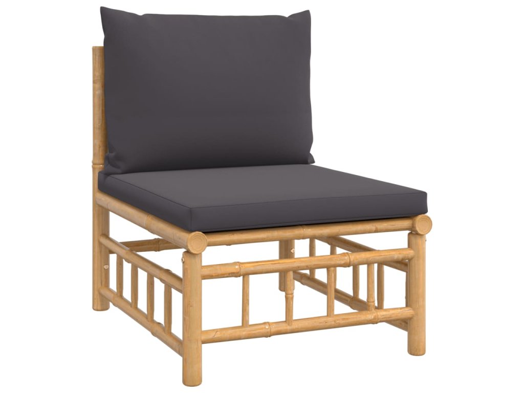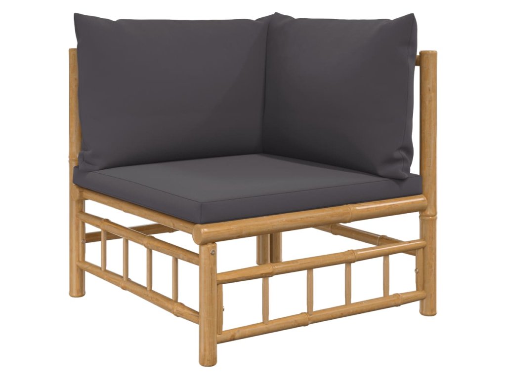 vidaXL 4-dielna záhradná sedacia súprava tmavosivé vankúše bambus