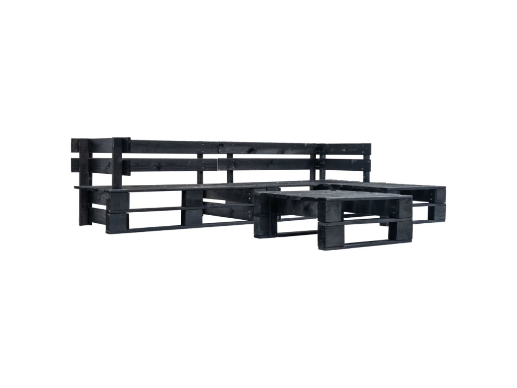 vidaXL 4-dielna záhradná sedacia súprava z paliet, čierna, drevo