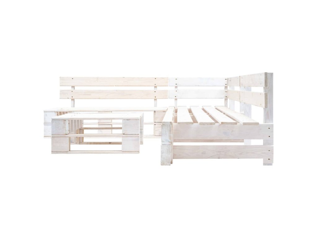 vidaXL 4-dielna záhradná sedacia súprava z paliet, drevo, biela