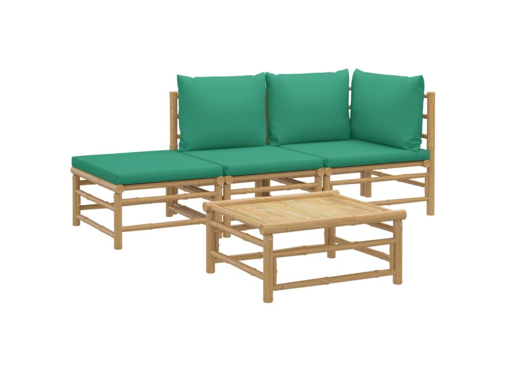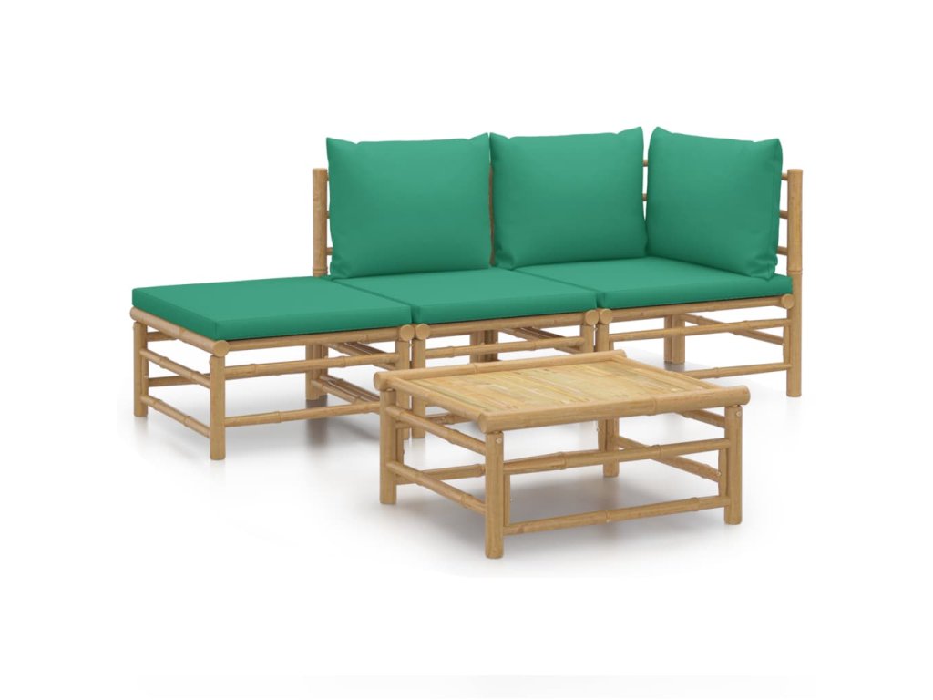vidaXL 4-dielna záhradná sedacia súprava zelené vankúše bambus