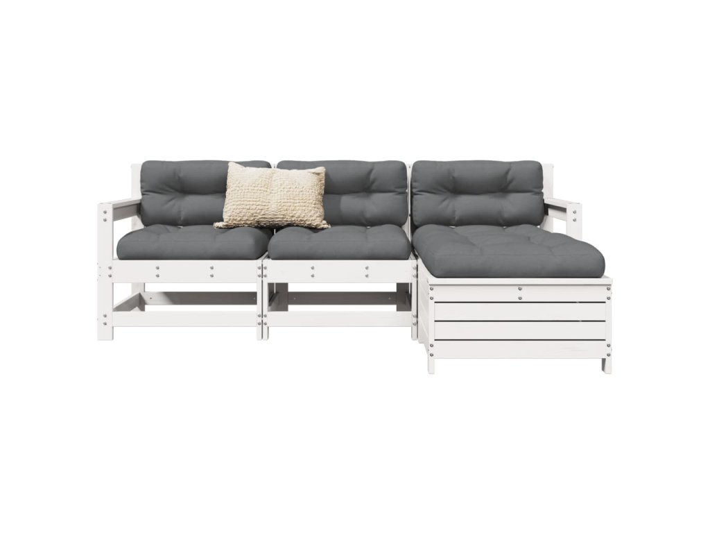 vidaXL 4-dielna záhradná súprava pohoviek biela masívna borovica