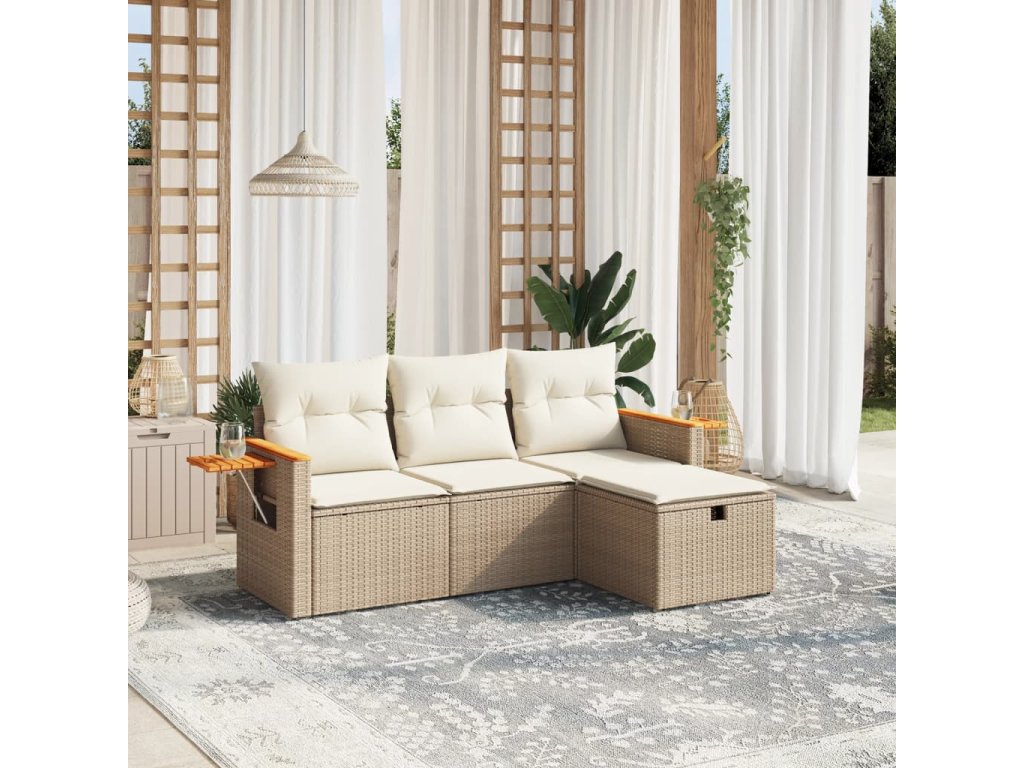vidaXL 4-dielna záhradná súprava pohoviek s vankúšmi béžová polyratan