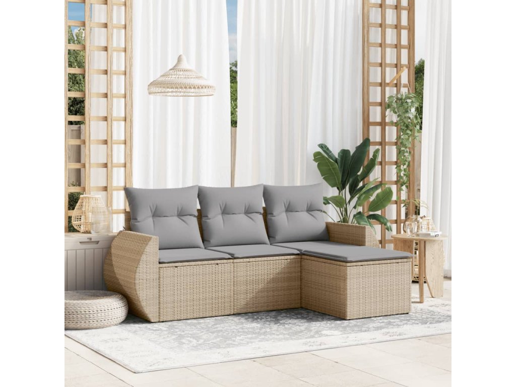vidaXL 4-dielna záhradná súprava pohoviek s vankúšmi béžová polyratan