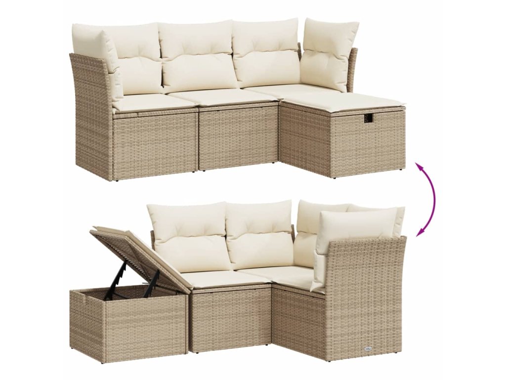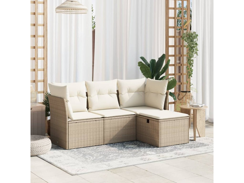 vidaXL 4-dielna záhradná súprava pohoviek s vankúšmi béžová polyratan