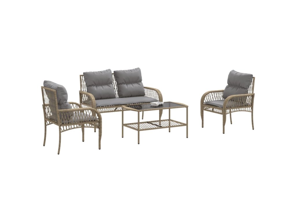 vidaXL 4-dielna záhradná súprava pohoviek s vankúšmi béžová polyratan