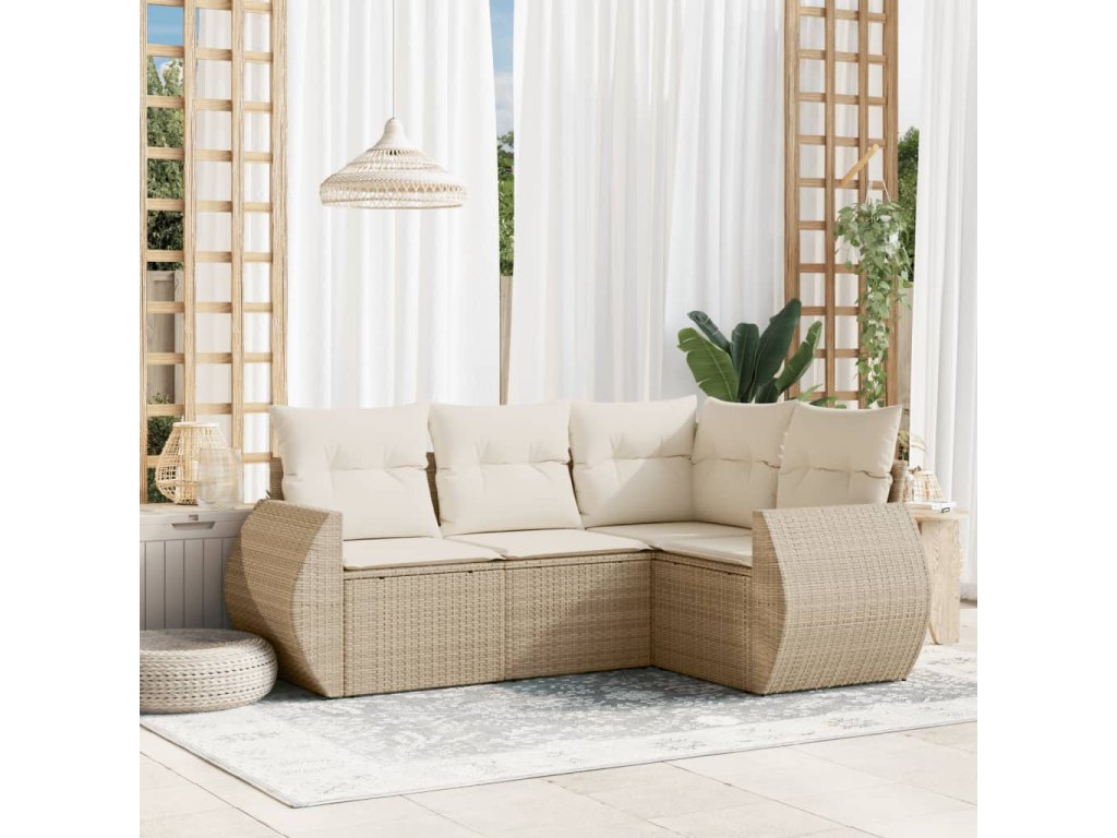 vidaXL 4-dielna záhradná súprava pohoviek s vankúšmi béžová polyratan
