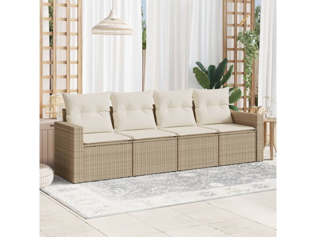 vidaXL 4-dielna záhradná súprava pohoviek s vankúšmi béžová polyratan