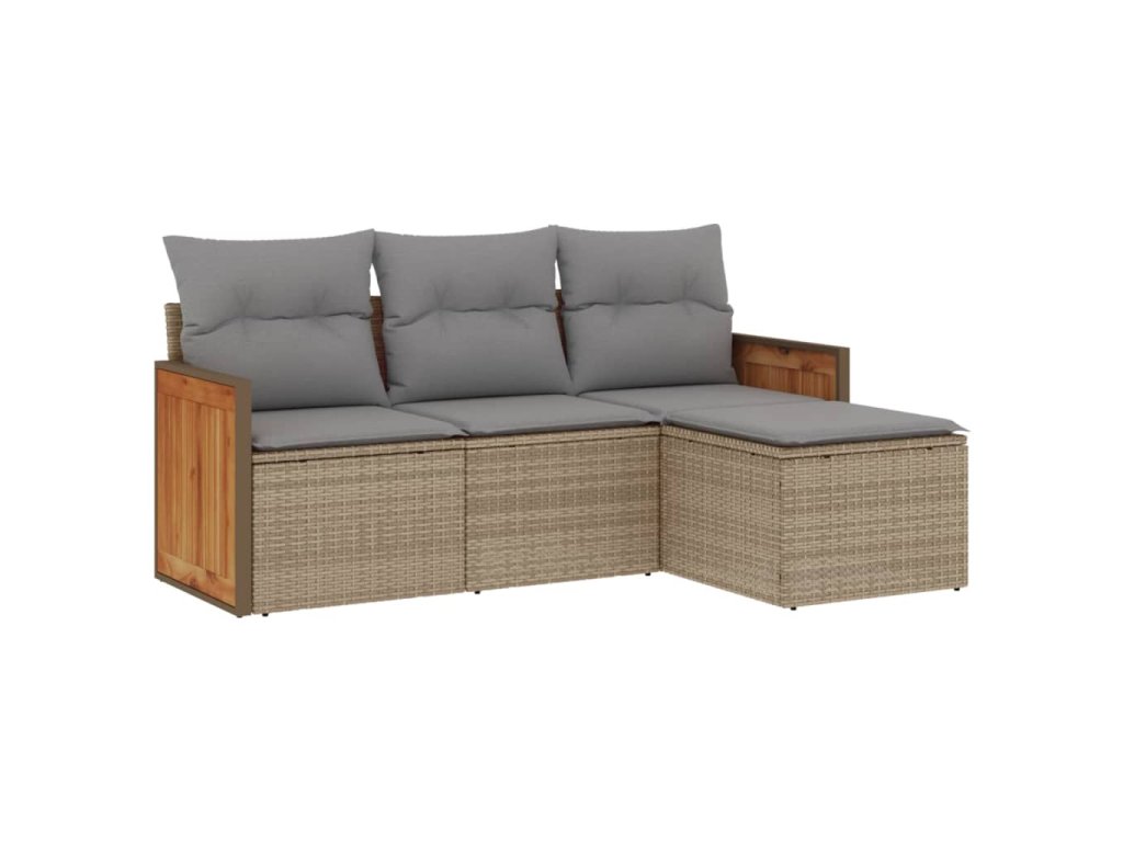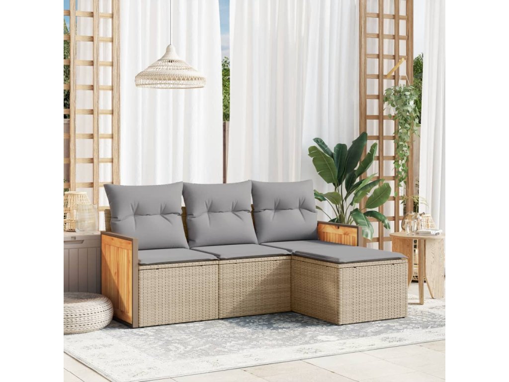 vidaXL 4-dielna záhradná súprava pohoviek s vankúšmi béžová polyratan