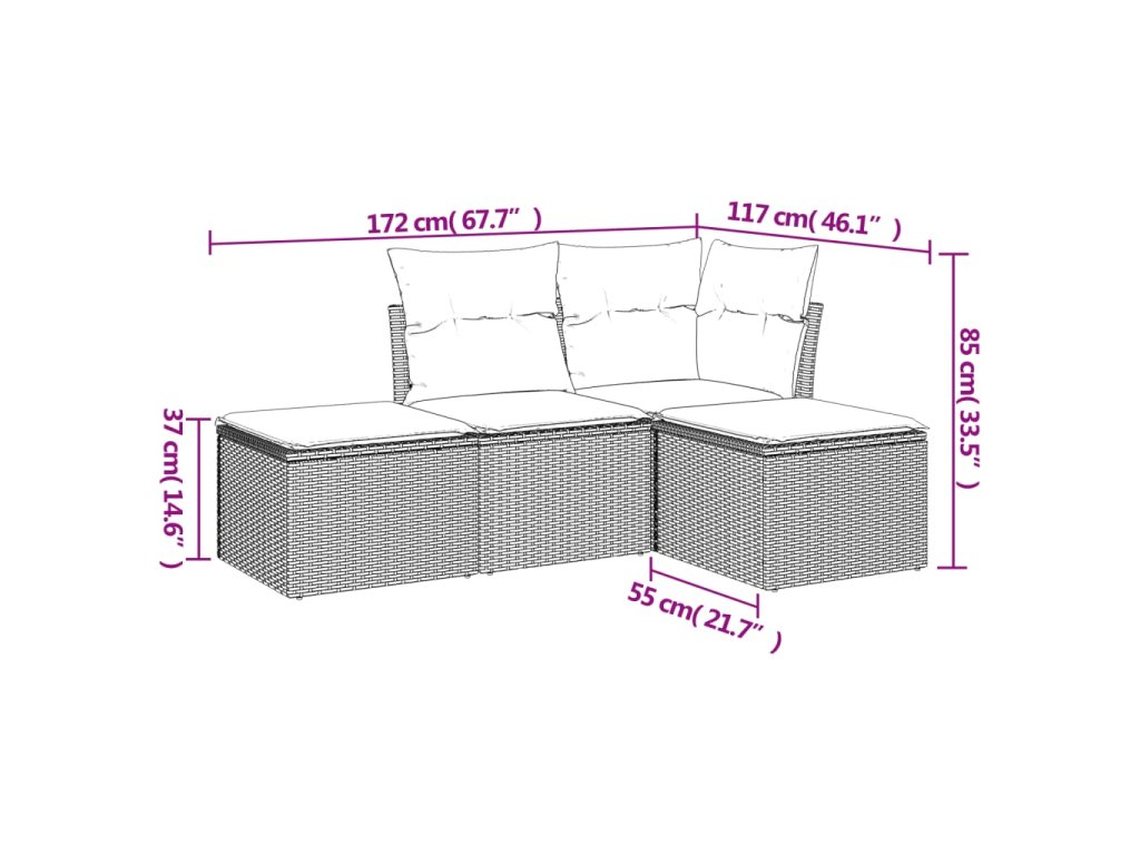 - Celkové rozmery pohovky: 172 x 117 x 69 cm (Š x H x V)