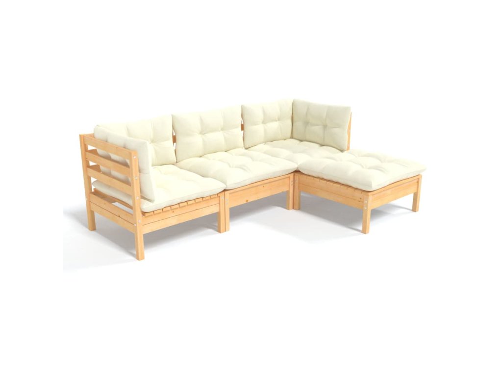 vidaXL 4-dielna záhradná súprava s krémovými vankúšmi borovica
