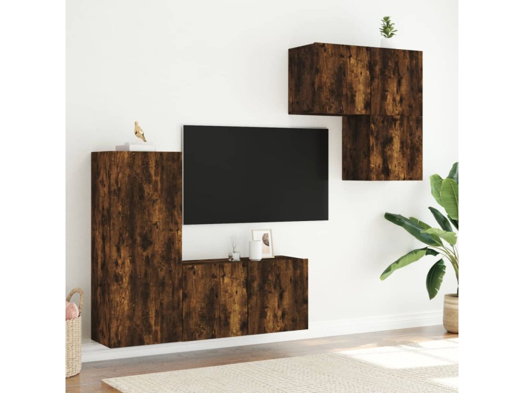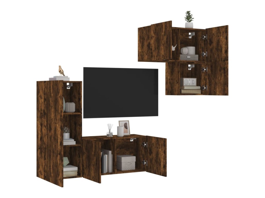 vidaXL 4-dielne TV nástenné skrinky dymový dub kompozitné drevo