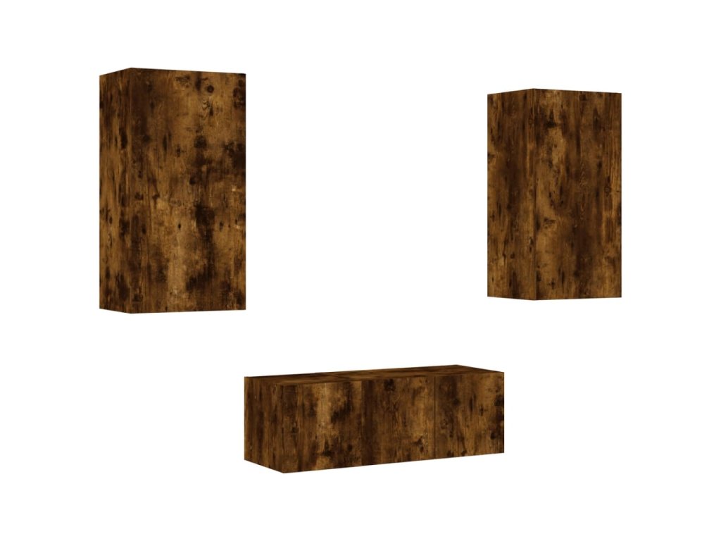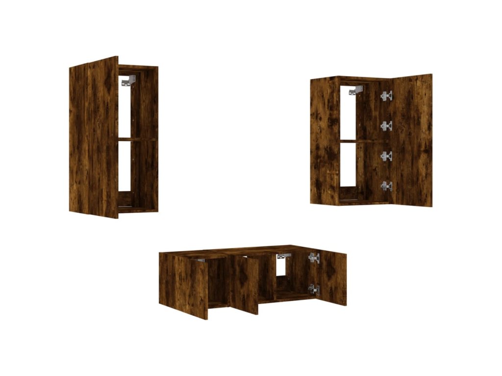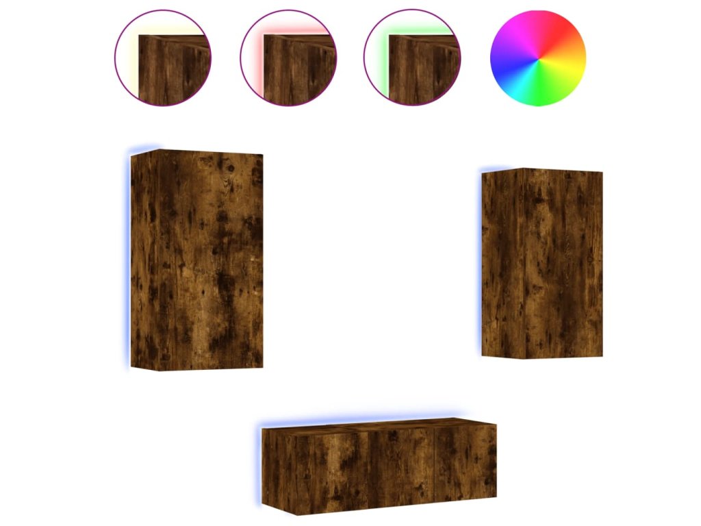 vidaXL 4-dielne TV nástenné skrinky s LED dymový dub kompozitné drevo