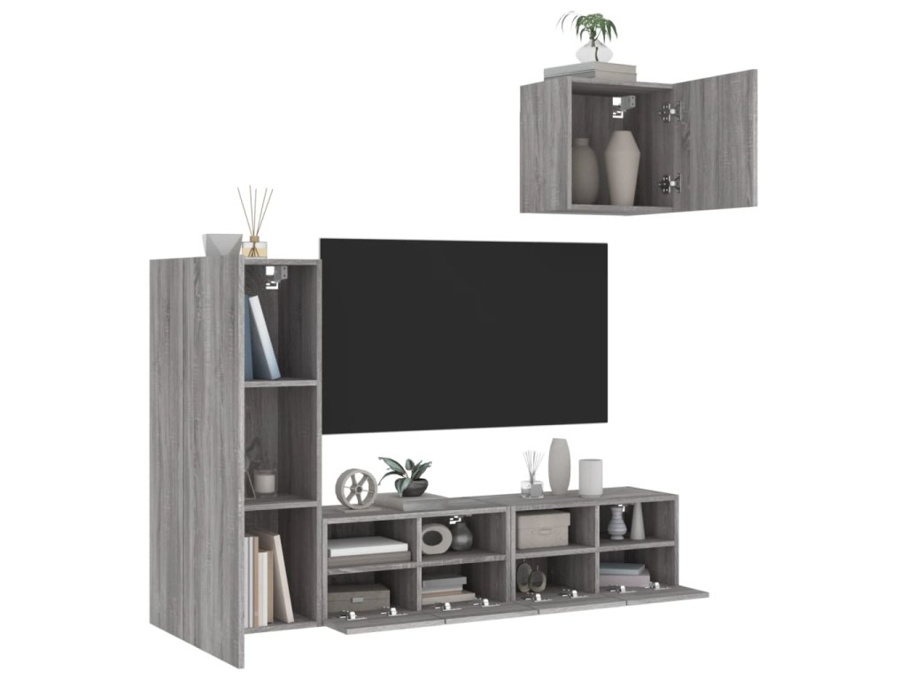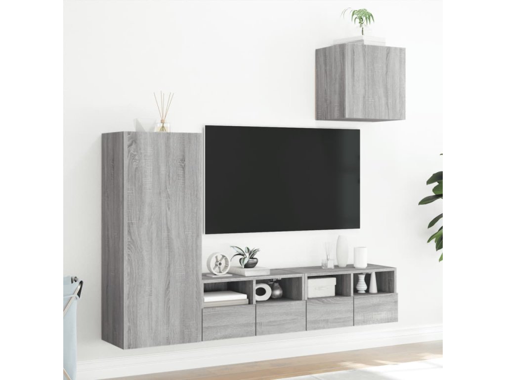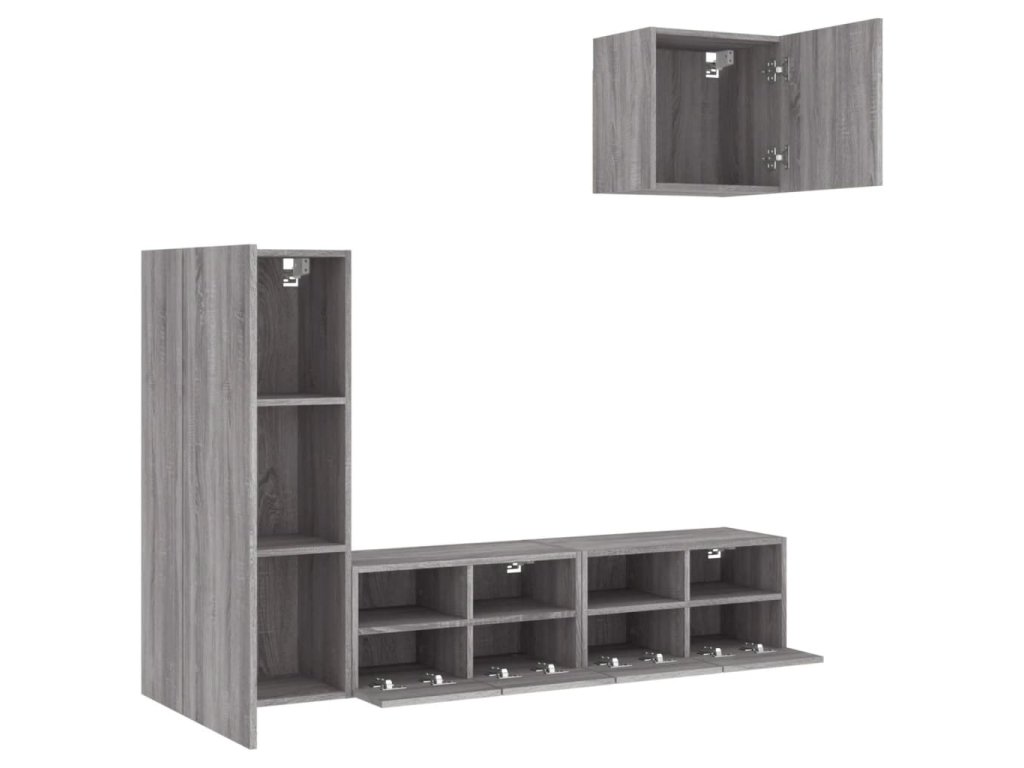 vidaXL 4-dielne TV nástenné skrinky sivý dub sonoma kompozitné drevo