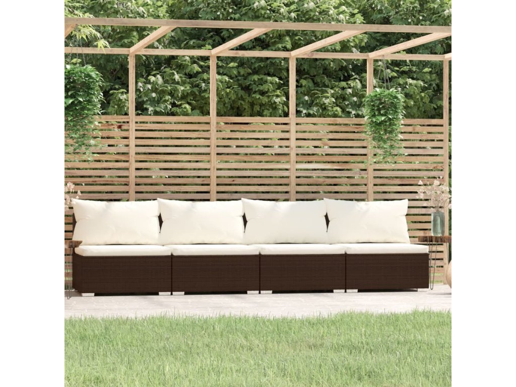vidaXL 4-miestna pohovka s vankúšmi hnedá polyratanová