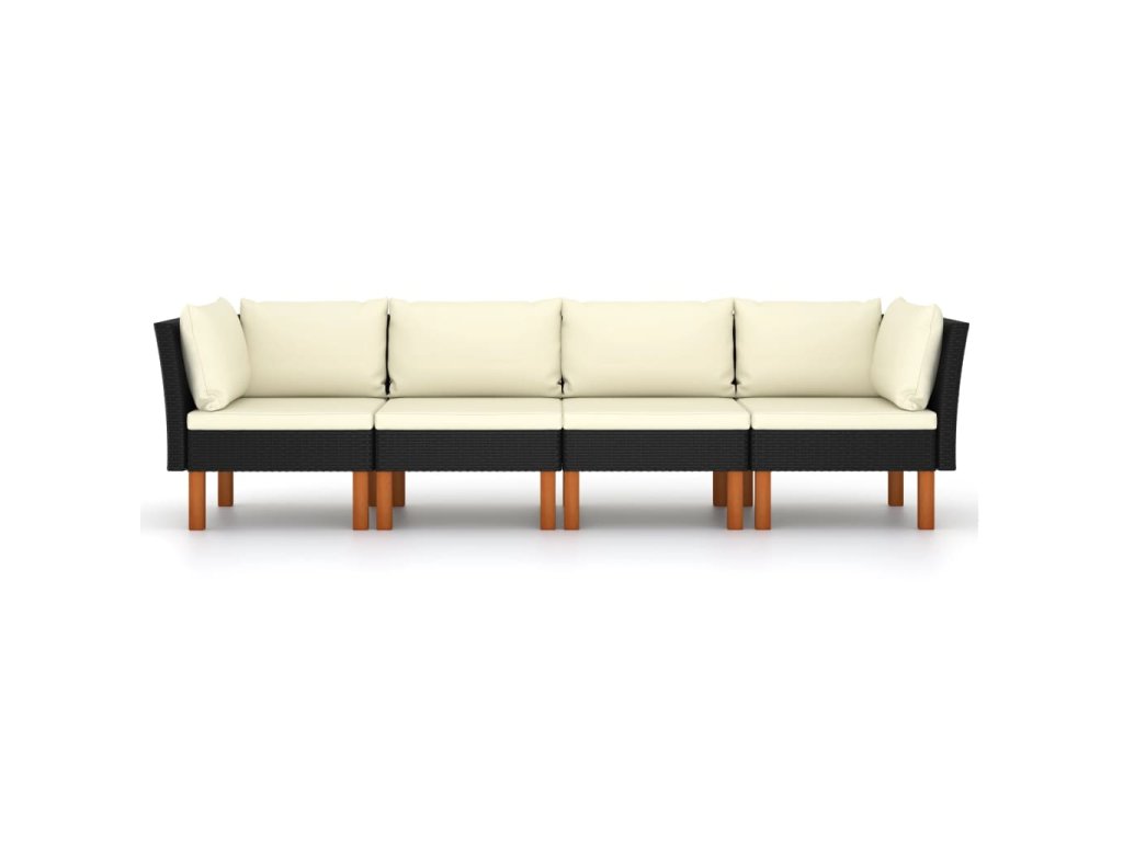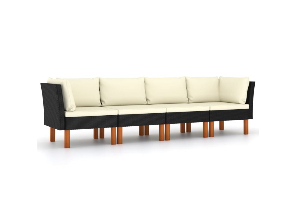 vidaXL 4-miestna záhradná pohovka s podložkami čierna polyratan