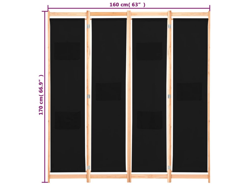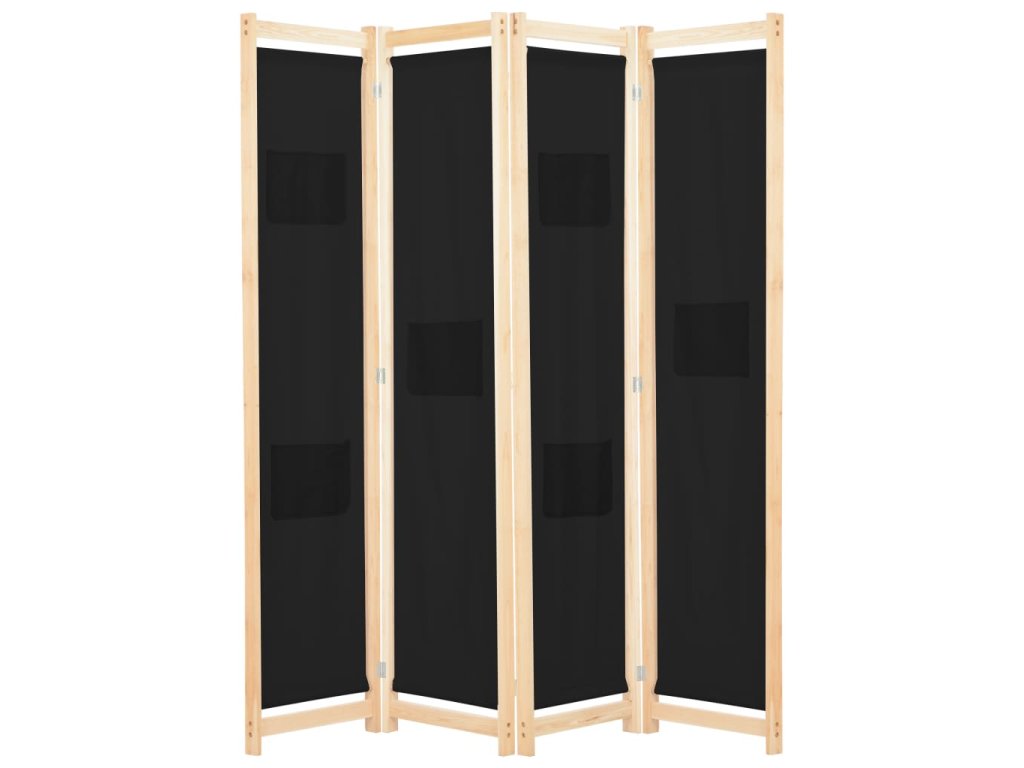 vidaXL 4-panelový paraván čierny 160x170x4 cm látkový