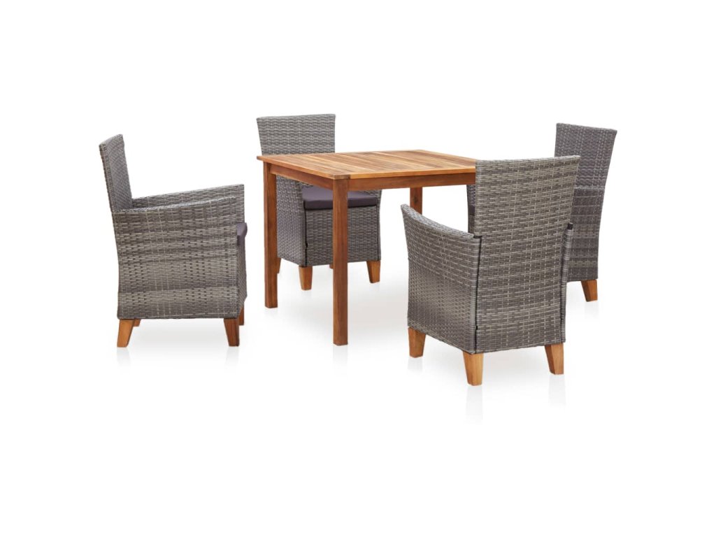 vidaXL 5-dielna jedálenská súprava sivá polyratan a akáciové drevo