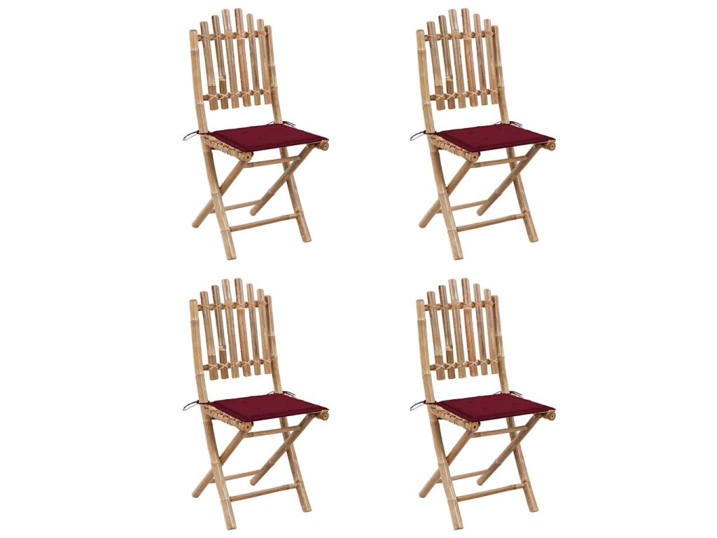 Vonkajšia jedálenská súprava je vyrobená z masívneho bambusu, a je pevná a odolná. Je tiež odolná voči poveternostným vplyvom, vodeodolná a ľahko sa čistí vlhkou handričkou. Stôl a stoličky sú skladacie, aby ste ušetrili úložný priestor, keď ich nepoužívate. Pribalená podložka poskytuje ďalšie pohodlie počas leňošenia. Je vyrobená zo 100% polyesteru, takže je pevná a dostatočne odolná, a vhodná pre vonkajšie použitie. Každý vankúš má dve sady povrázkov, ktorými sa pevne uchytí k stoličke.