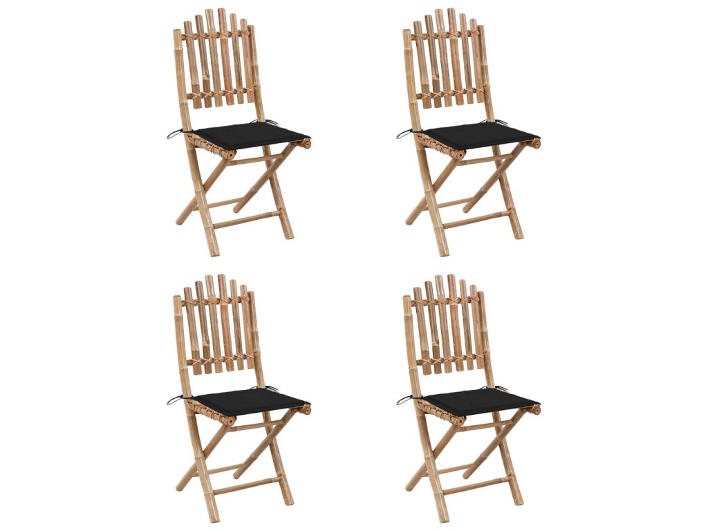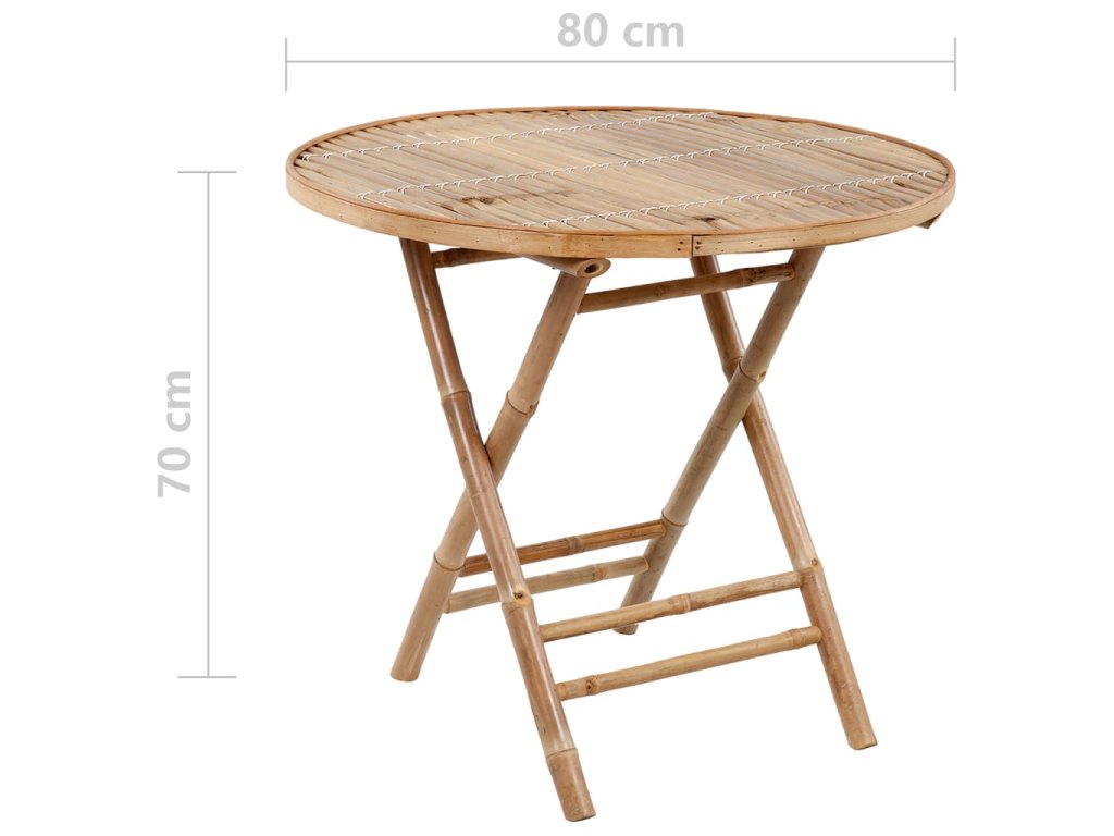 Vonkajšia jedálenská súprava je vyrobená z masívneho bambusu, a je pevná a odolná. Je tiež odolná voči poveternostným vplyvom, vodeodolná a ľahko sa čistí vlhkou handričkou. Stôl a stoličky sú skladacie, aby ste ušetrili úložný priestor, keď ich nepoužívate. Pribalená podložka poskytuje ďalšie pohodlie počas leňošenia. Je vyrobená zo 100% polyesteru, takže je pevná a dostatočne odolná, a vhodná pre vonkajšie použitie. Každý vankúš má dve sady povrázkov, ktorými sa pevne uchytí k stoličke.