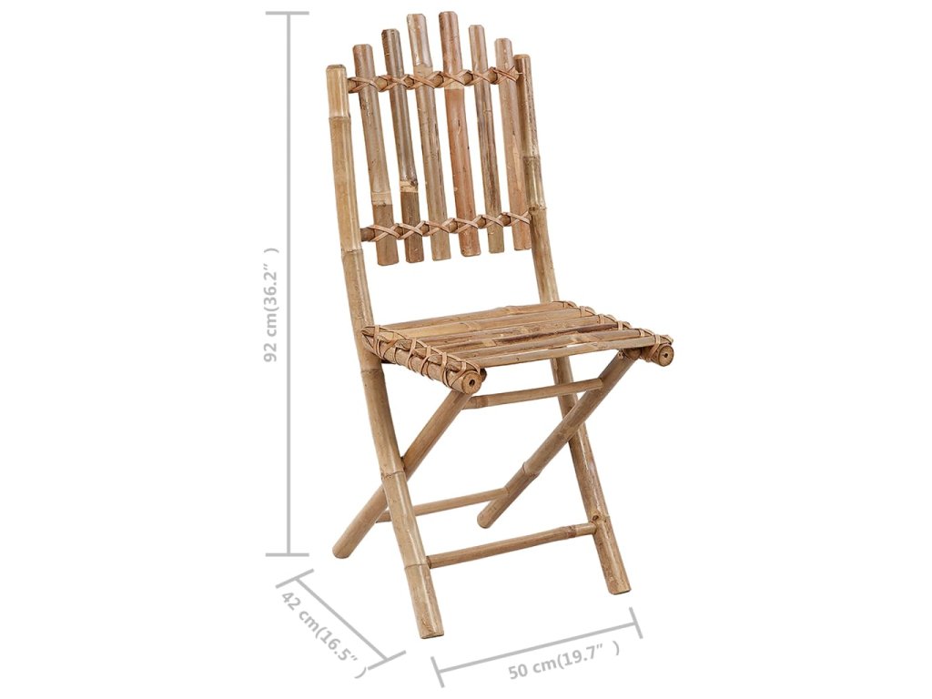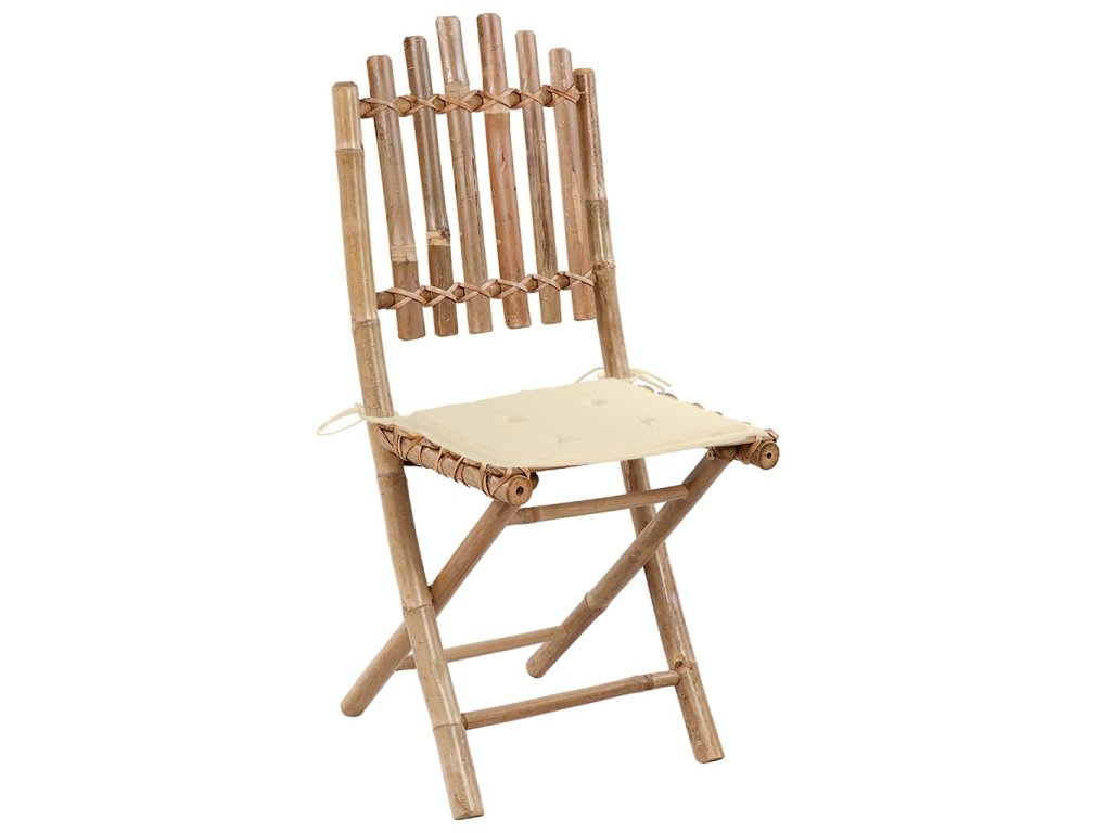 Vonkajšia jedálenská súprava je vyrobená z masívneho bambusu, a je pevná a odolná. Je tiež odolná voči poveternostným vplyvom, vodeodolná a ľahko sa čistí vlhkou handričkou. Stôl a stoličky sú skladacie, aby ste ušetrili úložný priestor, keď ich nepoužívate. Pribalená podložka poskytuje ďalšie pohodlie počas leňošenia. Je vyrobená zo 100% polyesteru, takže je pevná a dostatočne odolná, a vhodná pre vonkajšie použitie. Každý vankúš má dve sady povrázkov, ktorými sa pevne uchytí k stoličke.