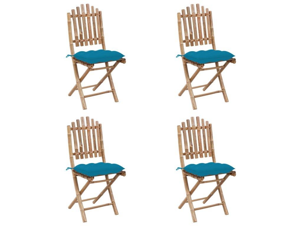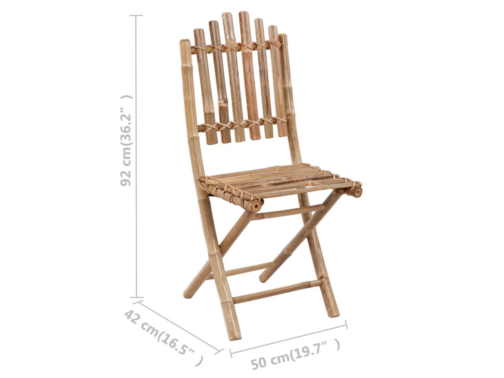Vonkajšia jedálenská súprava je vyrobená z masívneho bambusu, a je pevná a odolná. Je tiež odolná voči poveternostným vplyvom, vodeodolná a ľahko sa čistí vlhkou handričkou. Stôl a stoličky sú skladacie, aby ste ušetrili úložný priestor, keď ich nepoužívate. Pribalená podložka poskytuje ďalšie pohodlie počas leňošenia. Je vyrobená zo 100% polyesteru, takže je pevná a dostatočne odolná, a vhodná pre vonkajšie použitie. Každý vankúš má dve sady povrázkov, ktorými sa pevne uchytí k stoličke.