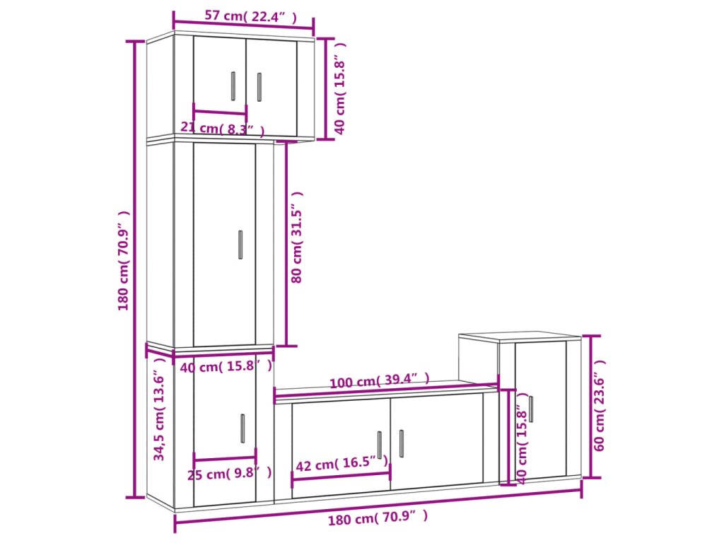 - 1 x TV skrinka: 100 x 34,5 x 40 cm (D x Š x V)