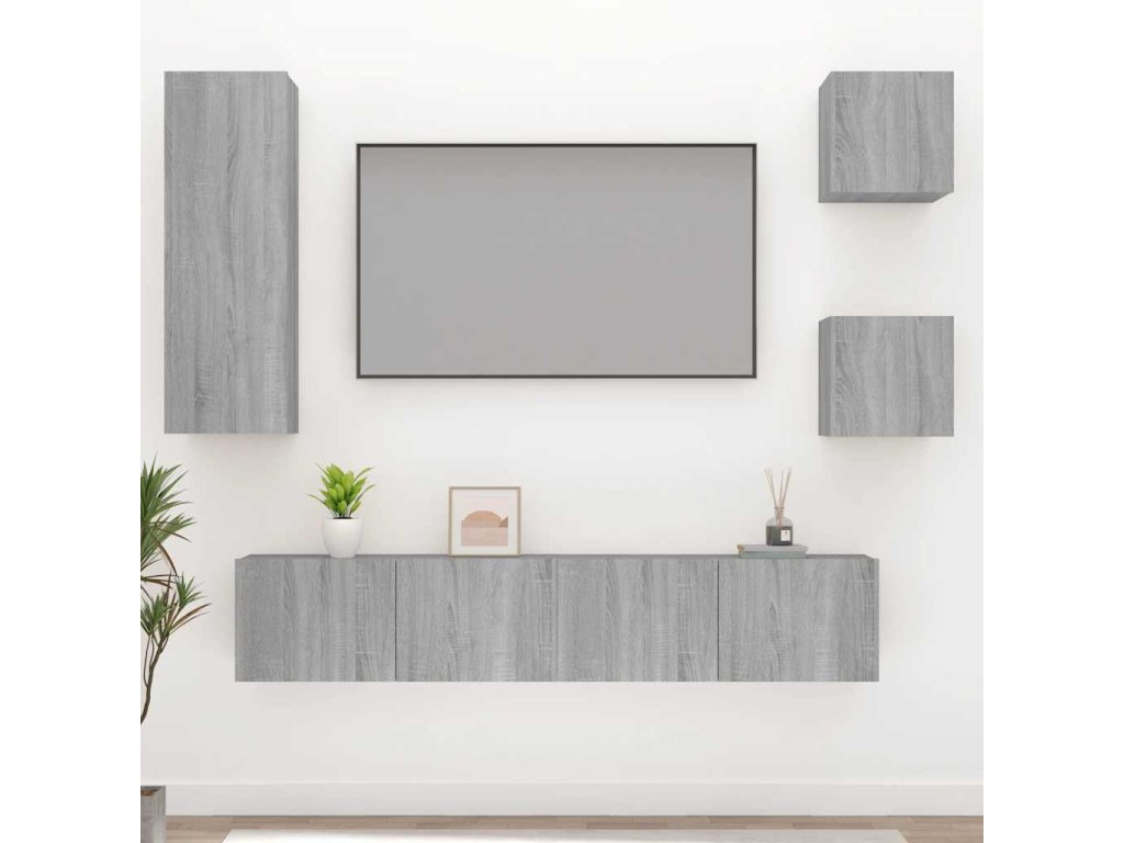 vidaXL 5-dielna súprava TV skriniek sivý dub sonoma spracované drevo