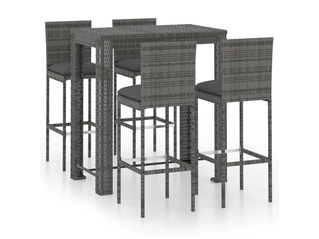vidaXL 5-dielna vonkajšia barová súprava s vankúšmi sivá polyratanová
