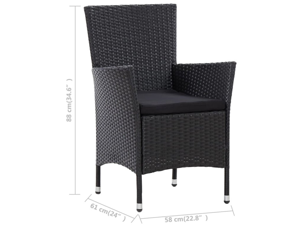 vidaXL 5-dielna vonkajšia jedálenská súprava+podložky,polyratan,čierna