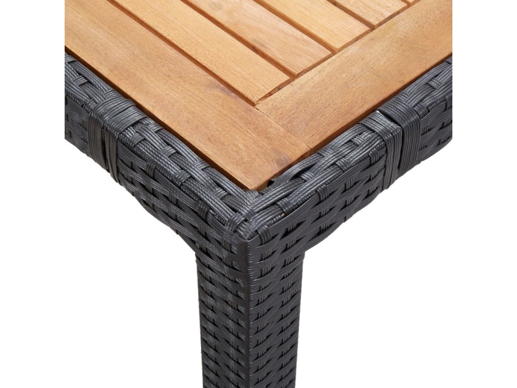 Jedálenská súprava je vyrobená z vodovzdorného PE ratanu, vďaka čomu sa ľahko čistí, je odolná a vhodná na každodenné používanie v exteriéri. Oceľové rámy s práškovou povrchovou úpravou súprave dodávajú potrebnú stabilitu a zaručujú veľmi dlhú životnosť výrobku. Súčasťou balenia je aj jedálenský stôl s doskou z akáciového masívu, ktorý sa hodí k našim elegantným stoličkám. Nahusto vyčalunené, odnímateľné podložky s molitanovou výplňou poskytujú optimálne pohodlie pri sedení. Polyesterové obliečky na podložky si nevyžadujú náročnú údržbu a dajú sa bez problémov zvliecť a oprať. Záhradná súprava sa jednoducho montuje.