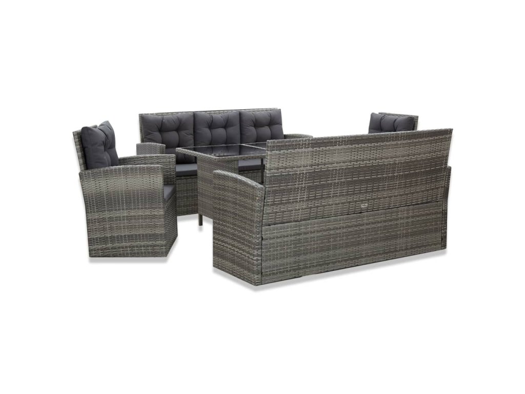 vidaXL 5-dielna vonkajšia jedálenská súprava s podložkami sivá polyratanová