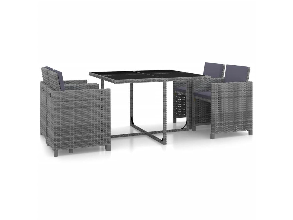 vidaXL 5-dielna vonkajšia jedálenská súprava s vankúšmi polyratan sivá