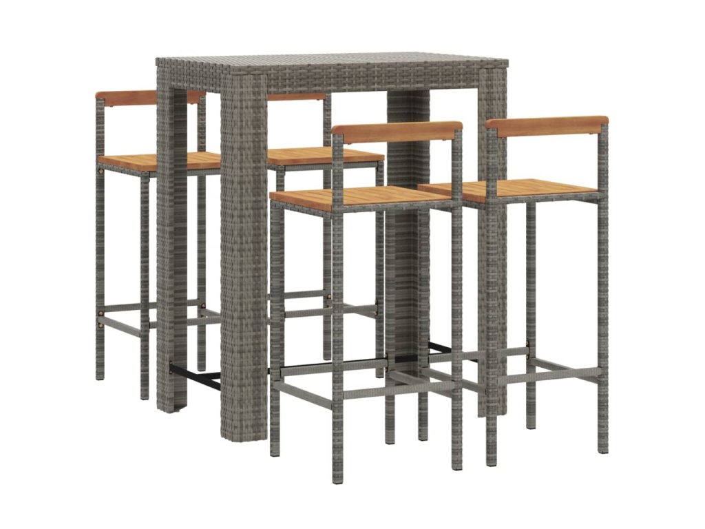 vidaXL 5-dielna záhr. barová súprava sivá polyratan a masívna akácia