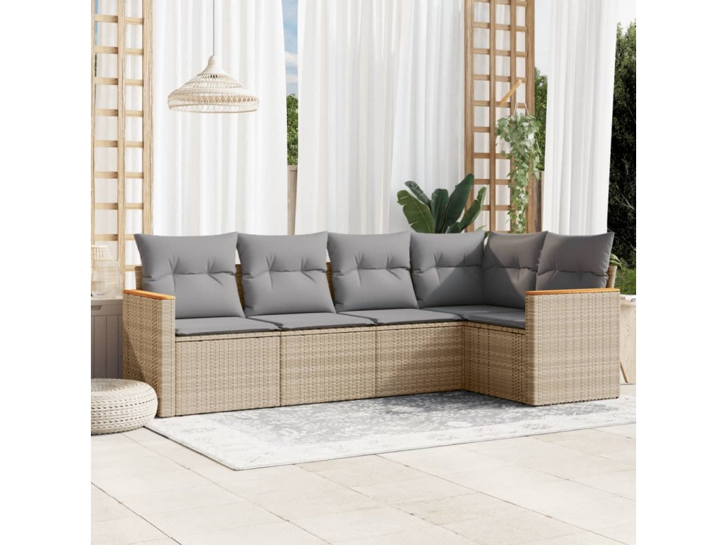 vidaXL 5-dielna záhr.sedacia súprava s vankúšmi mix béžovej polyratan