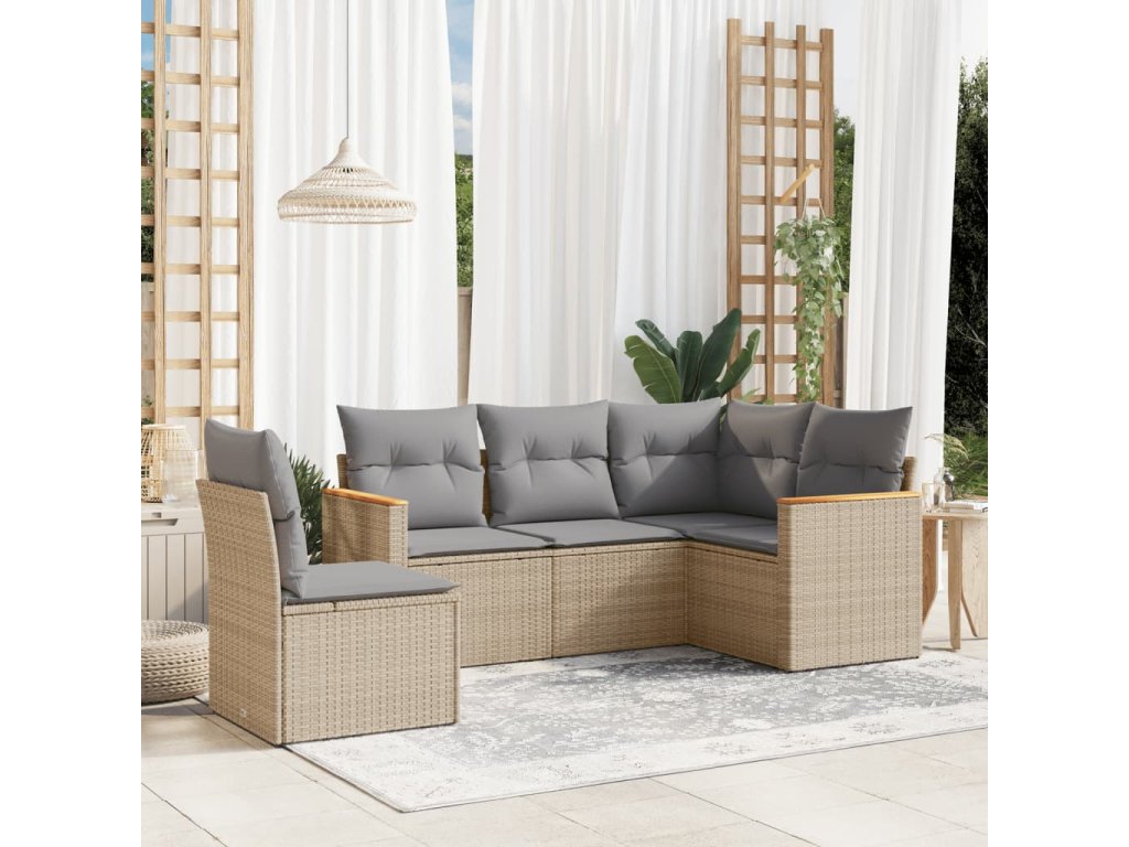 vidaXL 5-dielna záhr.sedacia súprava s vankúšmi mix béžovej polyratan