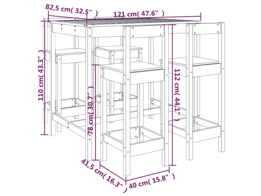 - Rozmery barového stola: 121 x 82,5 x 110 cm (Š x H x V)