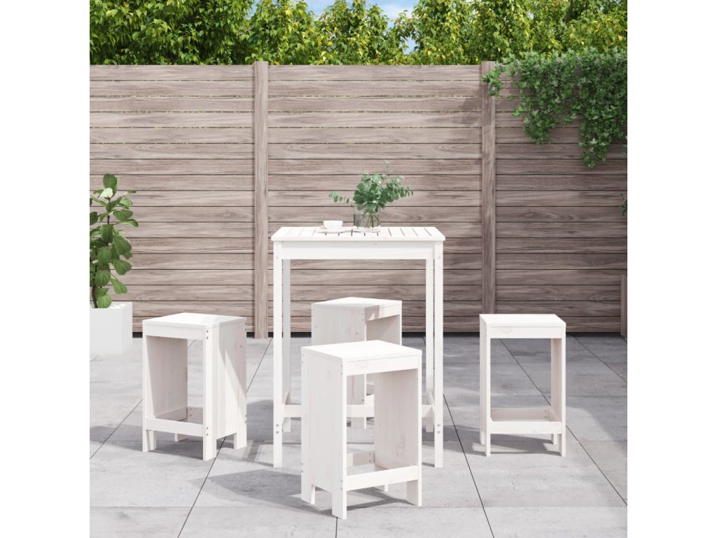 vidaXL 5-dielna záhradná barová súprava biela borovicový masív