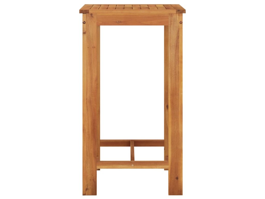 - Stolová doska z akáciového masívu: Akáciový masív je krásny prírodný materiál. Akáciové drevo je drevo tropického listnatého stromu, ktoré je husté, pevné a trvácne. Tento barový stôl je vyrobený z masívneho akáciového dreva, a je pevný a stabilný. Môžete si naň položiť občerstvenie, nápoje či vaše obľúbené dekorácie.