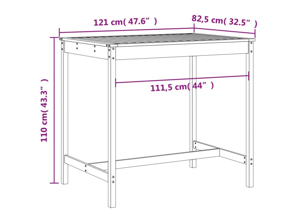 - Rozmery záhradného stola: 121 x 82,5 x 110 cm (Š x H x V)