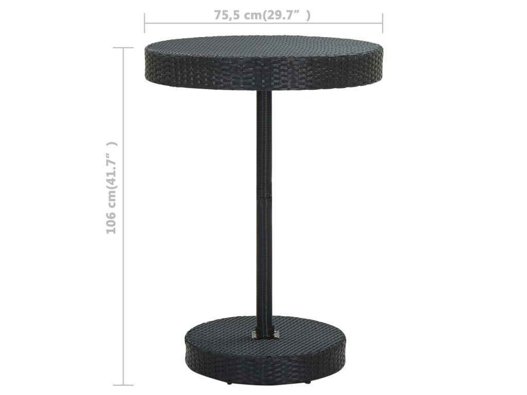 Barový stôl je opatrený oceľovým rámom s práškovanou povrchovou úpravou, vďaka čomu je stabilný a odolný. Okrúhla stolová doska je ideálna na položenie nápojov, jedla alebo dekoratívnych predmetov. Stoličky majú pevnú konštrukciu z oceľového rámu a sú vyrobené z PE ratanu odolného voči poveternostným vplyvom, čo zaisťuje ich stabilitu a ľahké premiestňovanie. Vankúš a opierka nôh tiež zvyšujú pohodlie pri sedení na stoličke. Poťah vankúša z polyesteru so skrytým zipsom uľahčuje čistenie.